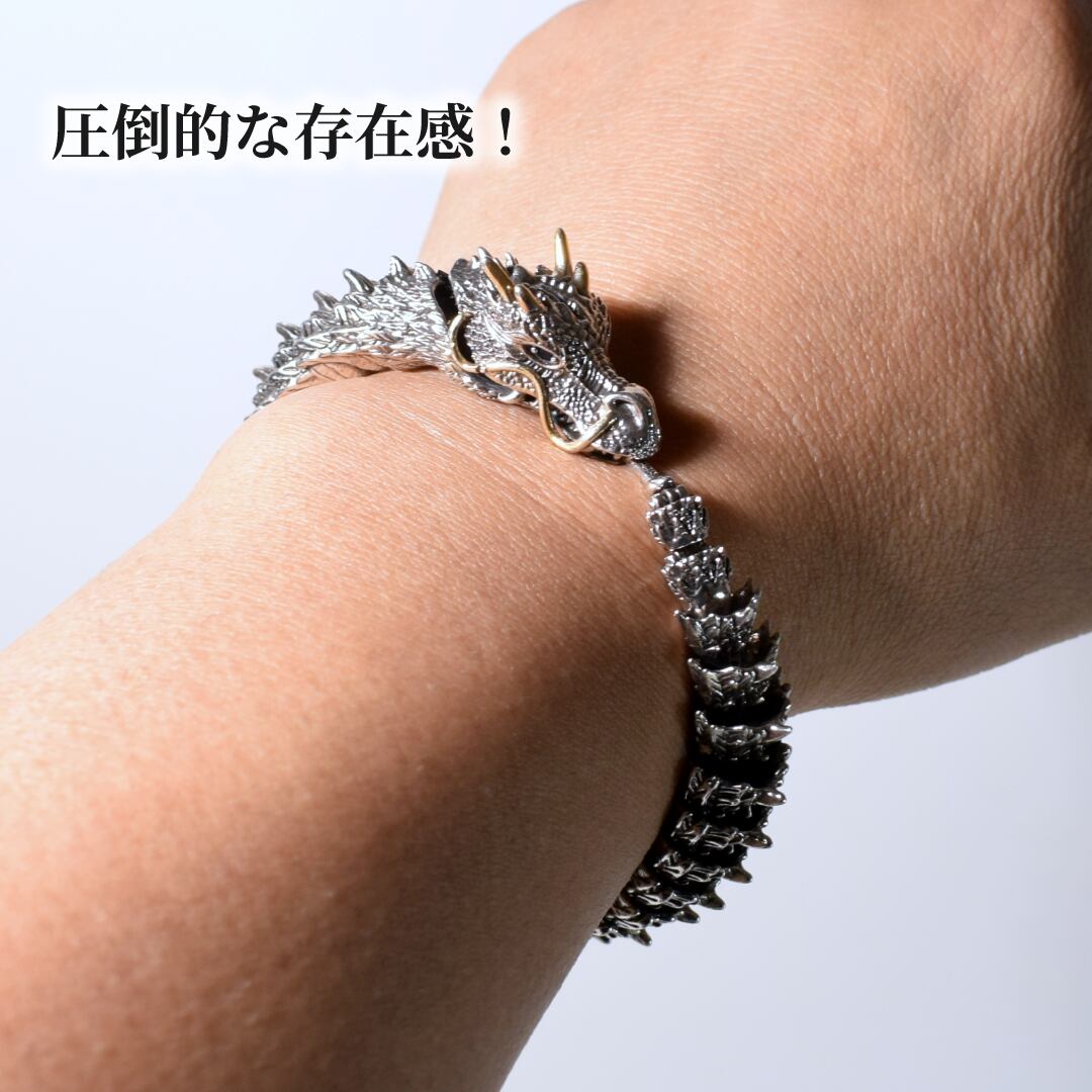 ドラゴンブレスレット メンズ ステンレス メタル アクセサリー 龍 竜 可動式 ごつい 極太